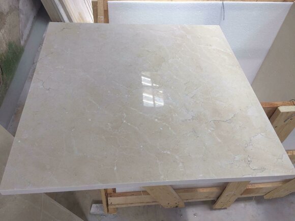 Unser Produkt Crema Marfil Marmorfliesen bietet hochwertige Marmorfliesen, die auf Ihre individuellen Bedürfnisse zugeschnitten werden können. Die Maße pro Platte betragen 60x60cm bei einer Dicke von 2cm, was eine Fläche von 0,36m² pro Platte ergibt. Ein Paket enthält 17 Platten und somit 6,12m² Fläche. Die Farbe ist ein elegantes Crema Marfil (Beige) mit einer polierten Oberfläche. Jede Platte weist eine einzigartige Marmorierung auf, was für ein individuelles und exklusives Erscheinungsbild sorgt.