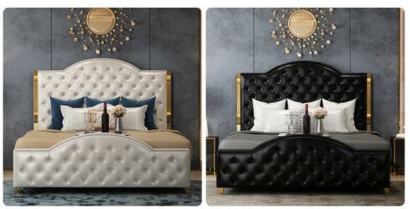 Das 3-teilige Schlafzimmer Set bestehend aus einem luxuriösen Bett und zwei Nachttischen kann auf Ihre individuellen Bedürfnisse zugeschnitten werden. Die Maße des Bettes betragen ca. 200 x 180 x 153 cm, mit einer Matratzenaufliegefläche von ca. 180 x 200 cm. Jeder Nachttisch ist ca. 55 cm lang, 55 cm hoch und 42 cm breit.