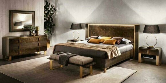 Das Bett Schlafzimmer Set besticht durch ein modernes Luxusdesign und umfasst 2x Nachttische im italienischen Stil. Die Maße des Sets sind wie folgt: Die Matratzenaufliegefläche misst ca. 180cm x 200cm, das Bett selbst hat die Maße ca. 242cm x 218cm x 130cm. Die Nachttische haben eine Größe von 65 x 43 x 54 cm (L x B x H).