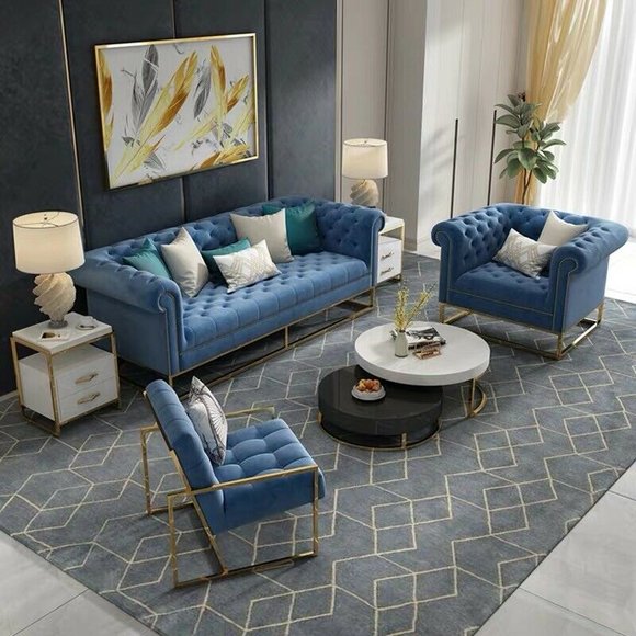 Unser 3-Sitzer Sofa und die 2 Sessel sind perfekt für gemütliche Stunden Zuhause. Das Sofa hat die Maße von ca. 215 x 95 x 80 cm, während jeder Sessel ca. 112 x 95 x 80 cm groß ist. Die Farbe entspricht der Abbildung. Der Korpus besteht aus hochwertigem Material, das Sie je nach Wunsch in Premium Stoff, Premium Kunstleder, Teil-Leder oder luxuriösem Vollleder in italienischem Rindsleder wählen können. Der Innengestell ist aus echtem Holz gefertigt und für den Komfort sorgt der Federkern.