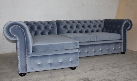 Design Chesterfield Ecksofa Eckcouch Loungesofa Couch Blau Textil