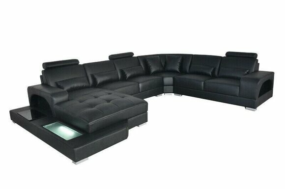 Design Leder Polster Sitz Ecke Zimmer Sofa Eck Sofas mit USB Designer Wohn LED