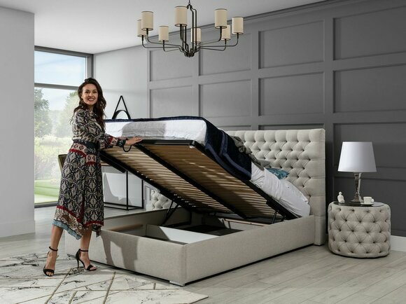Wählen Sie aus einer Vielzahl von Farben und Materialien, darunter Premium Kunstleder oder Stoffe aus verschiedenen Gruppen. Möchten Sie es noch exklusiver? Fragen Sie nach der Möglichkeit einer Anfertigung in echtem italienischem Rindsleder. Für zusätzlichen Glamour bieten wir die Option von Kristallsteinen anstelle von Knöpfen, wobei Sie zwischen Standard-Kristallsteinen (+199,00 EUR) oder echten Swarovski Kristallsteinen (+599,00 EUR) wählen können. Dieses Bett mit Innengestell aus echtem Holz wird das Highlight Ihres Schlafzimmers sein. Artikel-Nr. EAN: 4062292324598