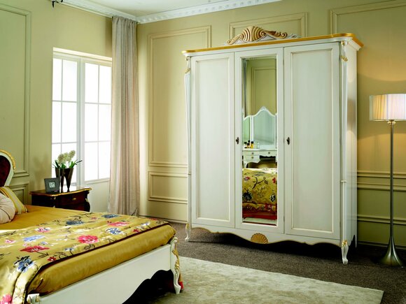 Der Kleiderschrank im italienischen Stil aus Echtholz ist das perfekte Möbelstück für Ihr Schlafzimmer. Mit seinen Maßen von ca. 189 cm Länge, 75 cm Breite und 231 cm Höhe bietet er ausreichend Platz für Ihre Kleidung und Accessoires.