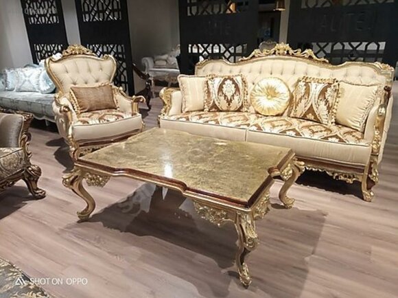 Goldene Sofagarnitur Barock Rokoko Set Komplett Couch Sofa 5tlg. Neu