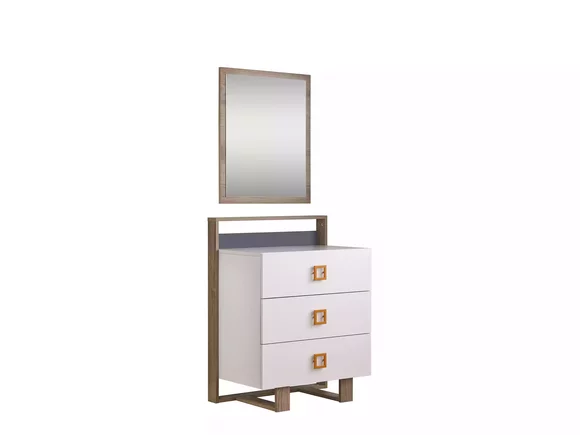 Unsere Gruppe Kommode mit Spiegel ist ein vielseitiges Möbelstück für Ihr Zuhause. Die Kommode bietet großzügigen Stauraum und hat folgende Maße: Länge ca. 75 cm, Breite ca. 48 cm und Höhe ca. 98 cm. Der dazu passende Spiegel ist ca. 73 cm lang, 3 cm breit und 60 cm hoch. Beide Teile sind aus stabilem Holz gefertigt und in einem eleganten Weiß gehalten.