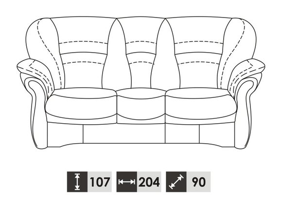 3 Sitzer: ca. 204 x 107 x 90 cm