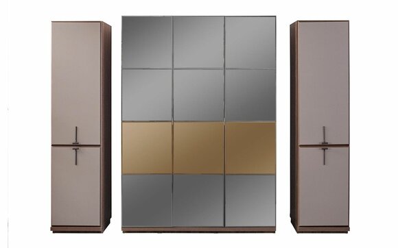 Der Kleiderschrank Garderobenschrank Design ist ein stilvoller Holzschrank mit einem eleganten Spiegel in Grau. Mit einer Länge von ca. 250 cm, einer Breite von ca. 70 cm und einer Höhe von ca. 217 cm bietet dieser Schrank viel Platz für Ihre Kleidung und Accessoires. Die Farbe entspricht genau der Abbildung, während das Material aus hochwertigem Holz gefertigt ist.