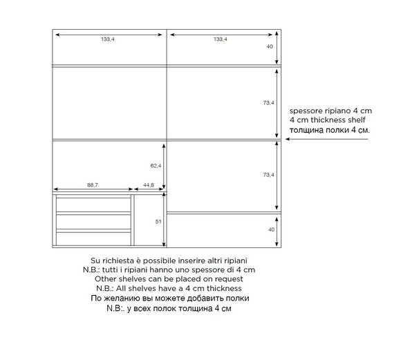 Unser Kleiderschrank in Luxus-Weiß ist ein perfektes Stück für das Schlafzimmer. Dieses Möbelstück aus italienischer Einrichtung bietet Stil und Funktionalität, die Ihren Bedürfnissen entsprechen. Die Maße des Schrankes betragen ca. 277,5 x 70 x 250 cm (Länge x Breite x Höhe). Der Kleiderschrank kommt in der Farbe Weiß, wie abgebildet, und ist aus hochwertigem Holz gefertigt.