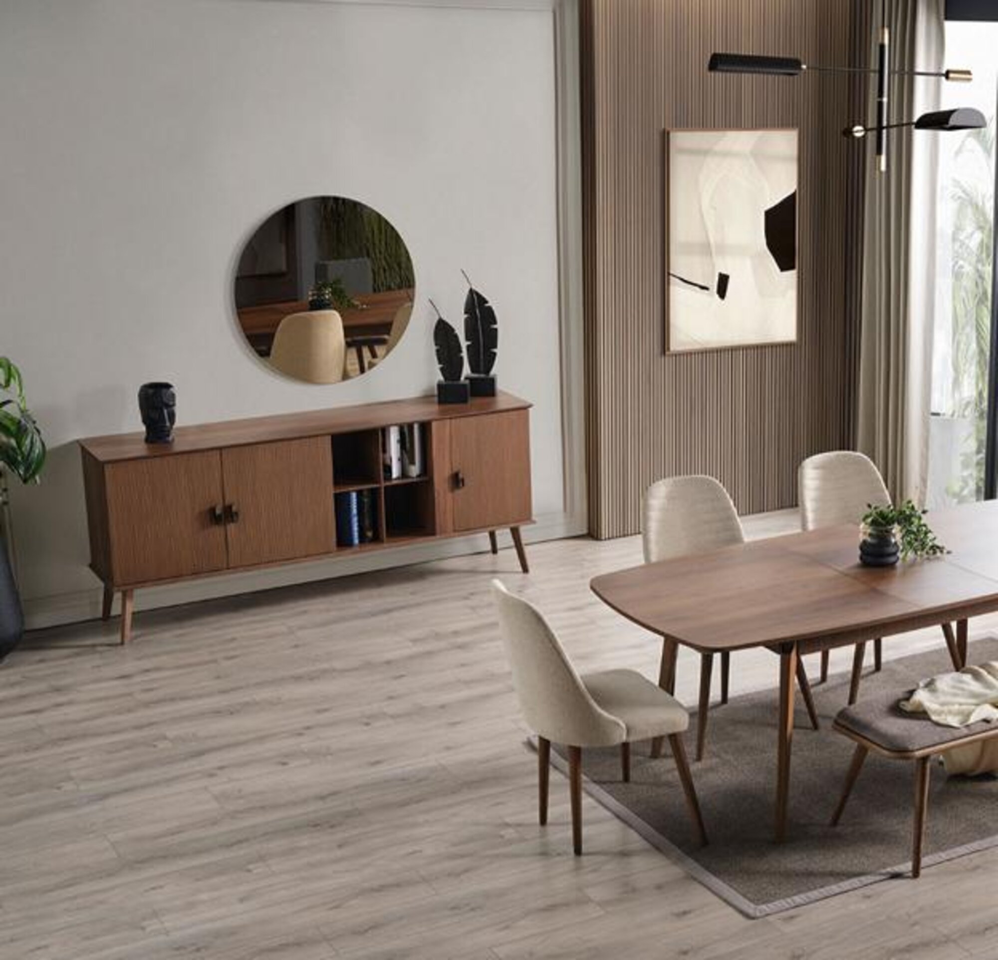 Entdecken Sie die Kommode Schrank Sideboard von JV Möbel, ein wahres Highlight für Ihr Zuhause. Mit einer Breite von 44 cm, einer Höhe von 85 cm und einer Länge von 203 cm bietet diese moderne und zeitgenössische Kommode nicht nur ausreichend Stauraum, sondern auch ein elegantes Design. Gefertigt aus dunklem Holz und in einem einfarbigen Muster gehalten, fügt sich dieses Möbelstück perfekt in Ihr Esszimmer oder Wohnzimmer ein. Die Kommode verfügt über 3 Schubladen und ist freistehend, was die Montage einfach gestaltet.