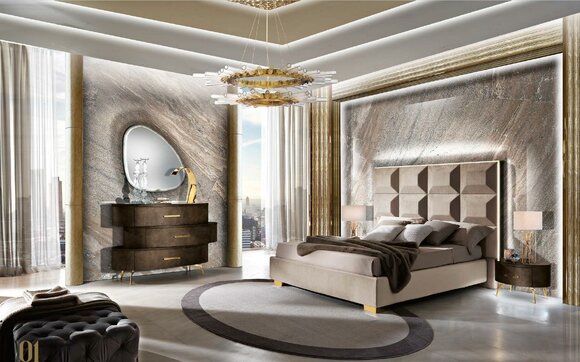 Kommode mit Spiegel Kommoden Schlafzimmer Schrank Holz Modern Design Braun Set