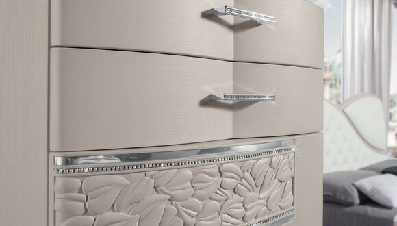Beschreiben Sie das moderne Luxus-Design Ihrer neuen Kommode im Detail! Mit einer Länge von ca. 136 cm, einer Breite von ca. 55 cm und einer Höhe von ca. 86 cm bietet dieses Möbelstück viel Stauraum und Eleganz für Ihr Schlafzimmer. Die hochwertige Holzverarbeitung in Kombination mit dem schlanken und stilvollen Design verleiht dem Raum eine luxuriöse Note.