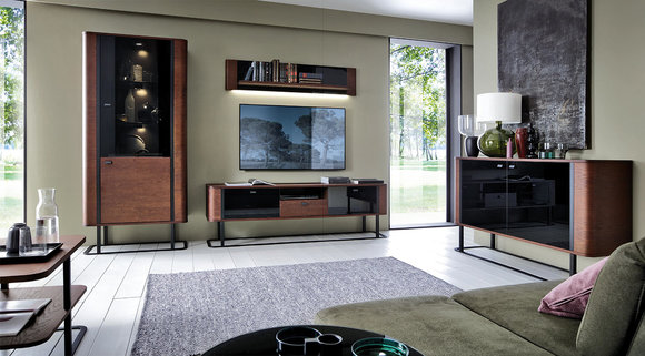 Rückwand & Einlegeböden: MDF (Mittledichte Holzfaserplatte), funiert & lackiert