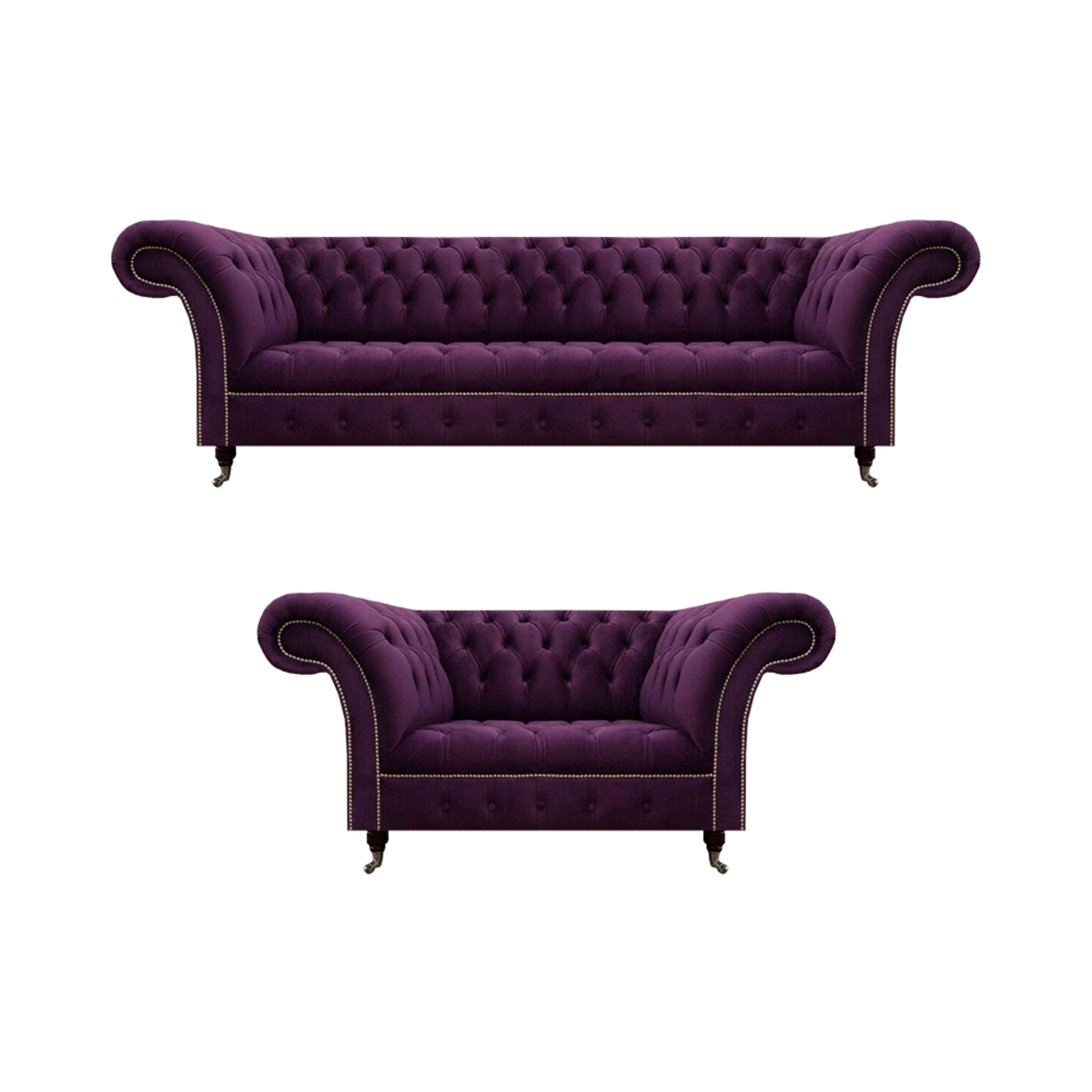 Entdecken Sie die **moderne Sofagarnitur** von **JV Möbel**, die mit ihrem eleganten **Chesterfield-Stil** in einem ansprechenden **lila Farbton** jeden Wohnraum aufwertet. Das Sofa-Set besteht aus zwei Teilen und bietet Platz für bis zu **5 Personen**. Mit einer Breite von **90 cm**, einer Länge von **220 cm** und einer Sitztiefe von **80 cm** garantiert es nicht nur Komfort, sondern auch eine stilvolle Ergänzung für Ihr Wohnzimmer. Der hochwertige **Polyester**-Polsterstoff sorgt für eine angenehme Haptik, während das robuste **Holzgestell** Stabilität und Langlebigkeit gewährleistet.