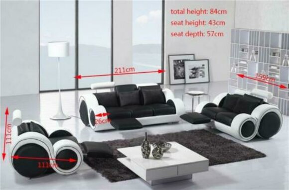 Unser Premium Lederfaserstoff Sofa ist die ideale Wahl für Ihr Wohnzimmer. Die Maße des Sofas sind vielfältig: Der 3-Sitzer misst ca. 211 x 84 x 111 cm, der 2-Sitzer ca. 159 x 84 x 111 cm und der 1-Sitzer ca. 111 x 84 x 111 cm. Mit einer Sitztiefe von ca. 57 cm und einer Sitzhöhe von ca. 43 cm bietet dieses Sofa den perfekten Sitzkomfort. Die Farbe des Sofas ist frei wählbar, und das Material besteht aus Premium Lederfaserstoff (70% Leder / 30% Polyester).