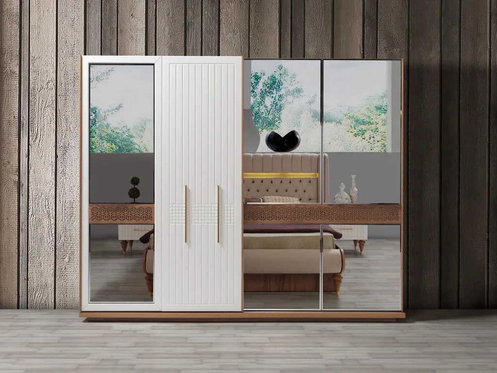 Schlafzimmer Luxus Kleiderschrank Holz mit Glas Design Modern