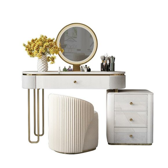 Der Schmink Frisiertisch ist ein elegantes und praktisches Möbelstück, das sich perfekt an Ihre individuellen Bedürfnisse anpassen lässt. Mit einer Länge von ca. 120 cm, einer Höhe von 76,5 cm und einer Tiefe von 40 cm bietet dieser Kosmetiktisch ausreichend Platz für all Ihre Schminkutensilien.