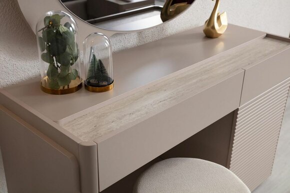 Stilvoller Beiger Schminktisch Luxuriöser Kosmetiktisch Edle Holz Möbel
