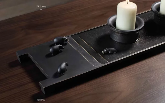 Tablett für Kerzen gemessen Messing Schwarz von Hand veredelt