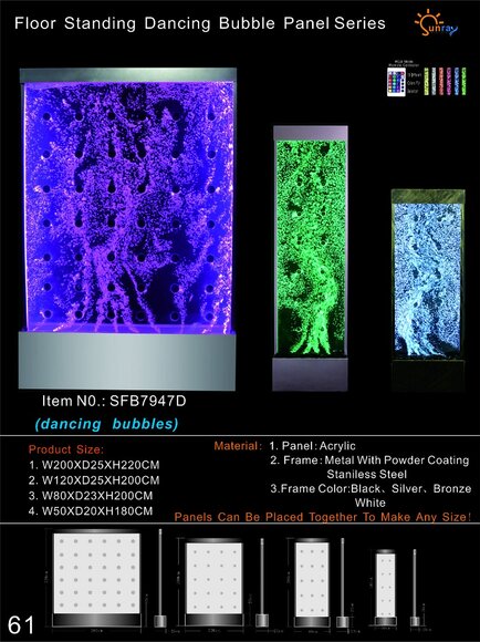 Unsere Wassersäule in luxuriösem Design ist ein Blickfang für jedes Zuhause oder Büro. Die Wasserwand kann auf individuelle Bedürfnisse zugeschnitten werden, um perfekt in Ihr Raumkonzept zu passen. Mit Maßen von ca. 50 cm Länge, 20 cm Breite und 180 cm Höhe ist sie ein stimmungsvolles Element, das Entspannung und Eleganz vereint. Optional sind auch größere Größen wie 200 * 25 * 220 cm, 120 * 25 * 200 cm und 80 * 23 * 200 cm gegen Aufpreis erhältlich. Das Material aus Acryl und Edelstahl garantiert Langlebigkeit und Stabilität, während der RGB Farbwechsel für eine stimmungsvolle Beleuchtung sorgt.