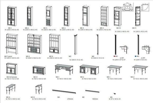 Maße - ME-5: Länge: ca. 59 cm, Höhe: ca. 229 cm, Tiefe: ca. 41 cm. Farbe: wie Abgebildet. Material: Korpus aus Massivholz, lackiert. Rückwand & Einlegeböden: MDF, furniert & lackiert. Der Korpus besteht aus echtem Holz.