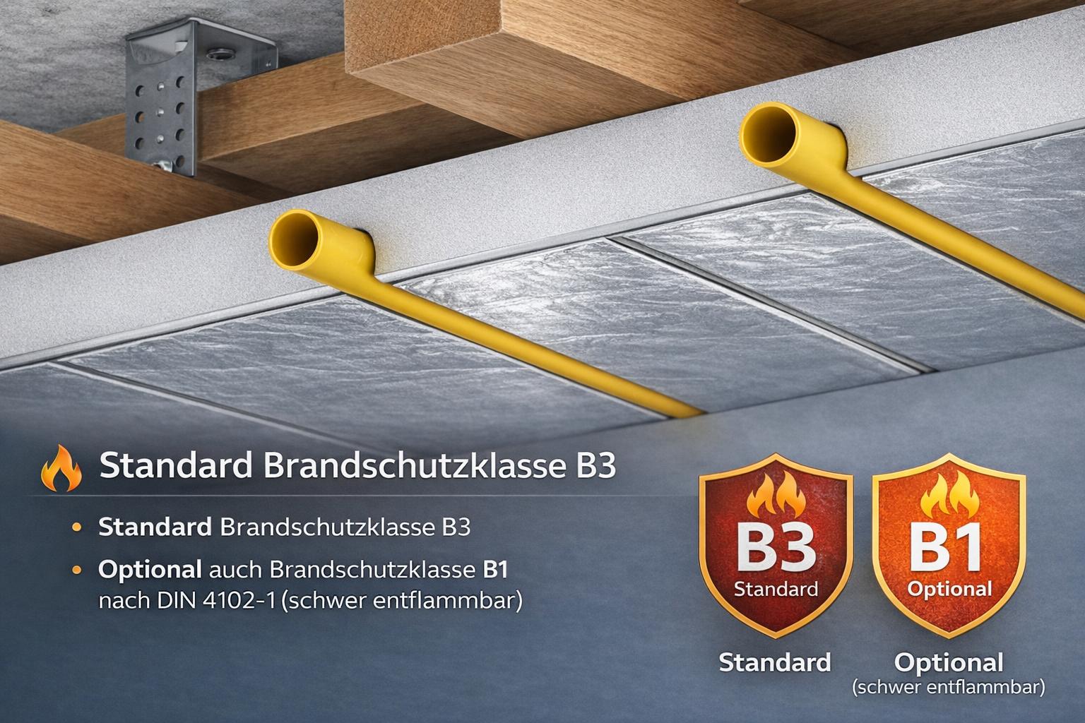 - optional auch Brandschutzklasse B1 nach DIN 4102-1 (schwer entflammbar)