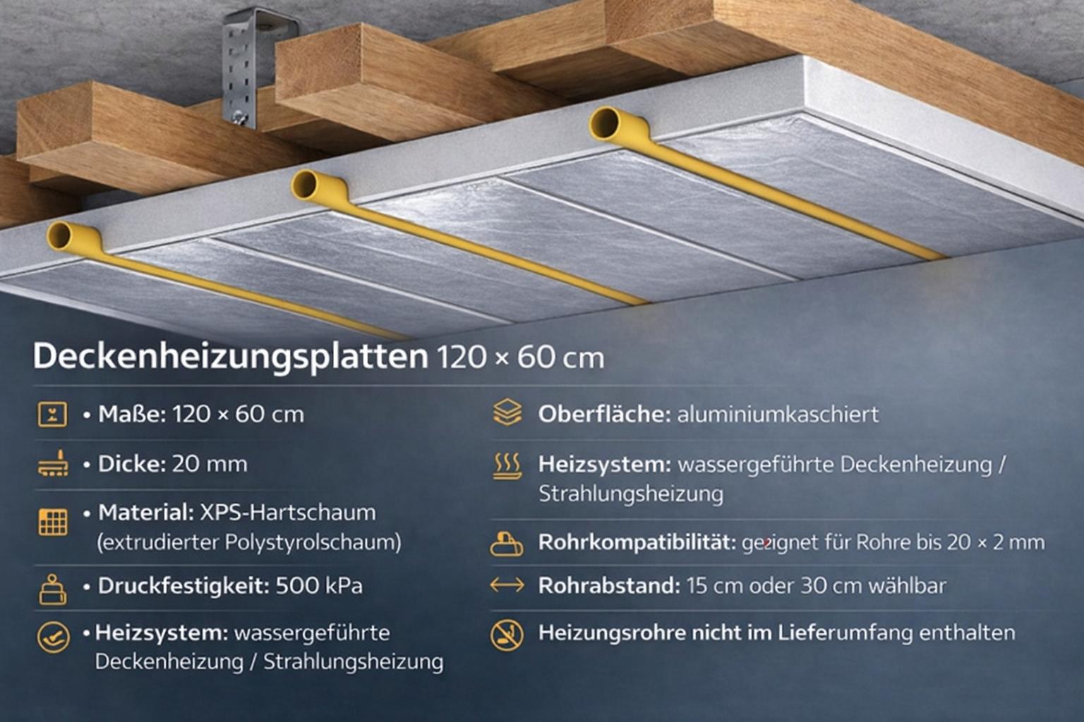 - Rohrlieferumfang: Heizungsrohre nicht enthalten