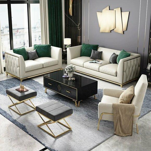 Dreisitzer Couch Polster Design Sofa 3er Sitz Sofas Zimmer Metall Beige Luxus Preis UVP: € 2.630,00 € 2.099,00* Produkt vergleichen auf der Merkliste auf die Merkliste in den Warenkorb